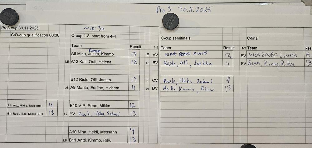 On Sunday, there will be C/D-cups and A/B-cups for all. It means six rounds, of which the lower cups are shortened a bit, so we can promise all the games ended latest at 17:00. More detailed prices and schedule are published after we know the final team count.